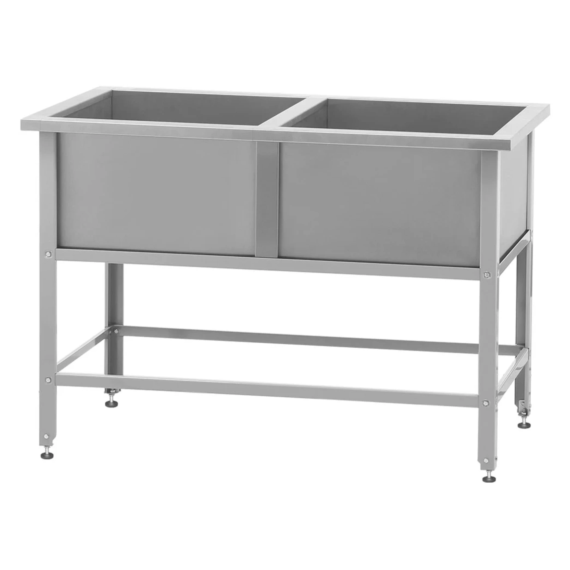 - Мойка сварной ванны опирается на стальной каркас и состоит из 2 отделений