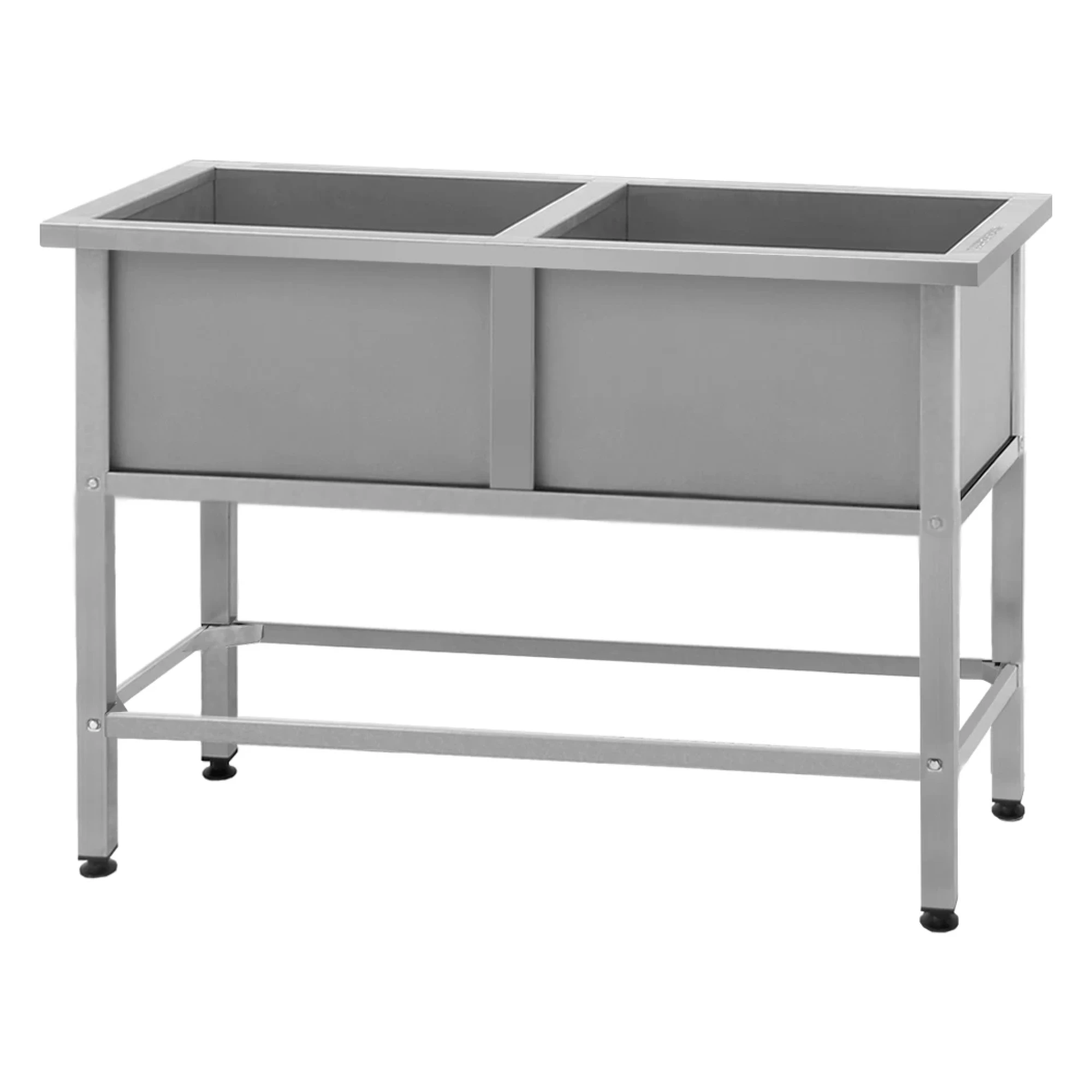 - Мойка сварной ванны опирается на стальной каркас и состоит из 2 отделений