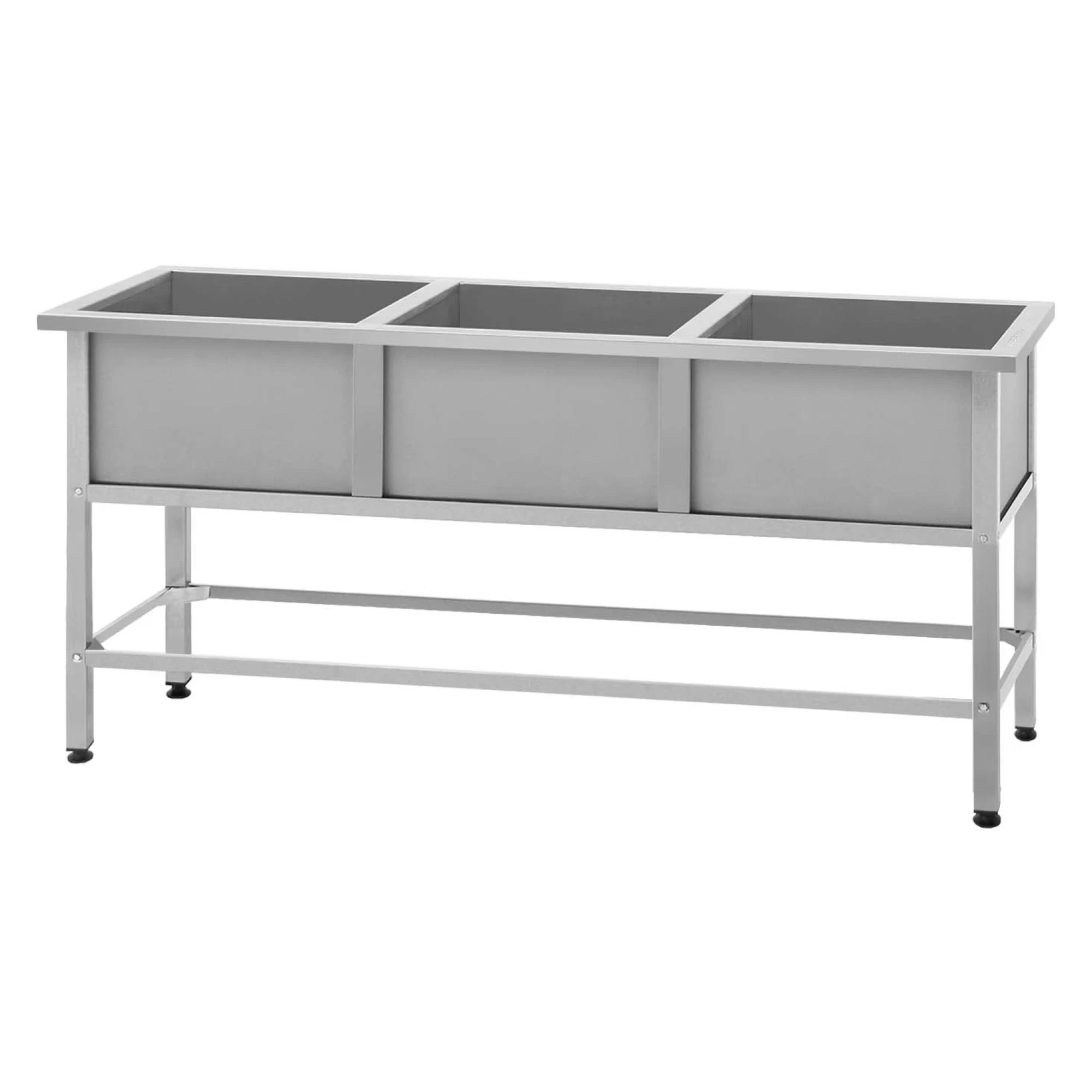 - Мойка сварной ванны опирается на стальной каркас и состоит из 3 отделений